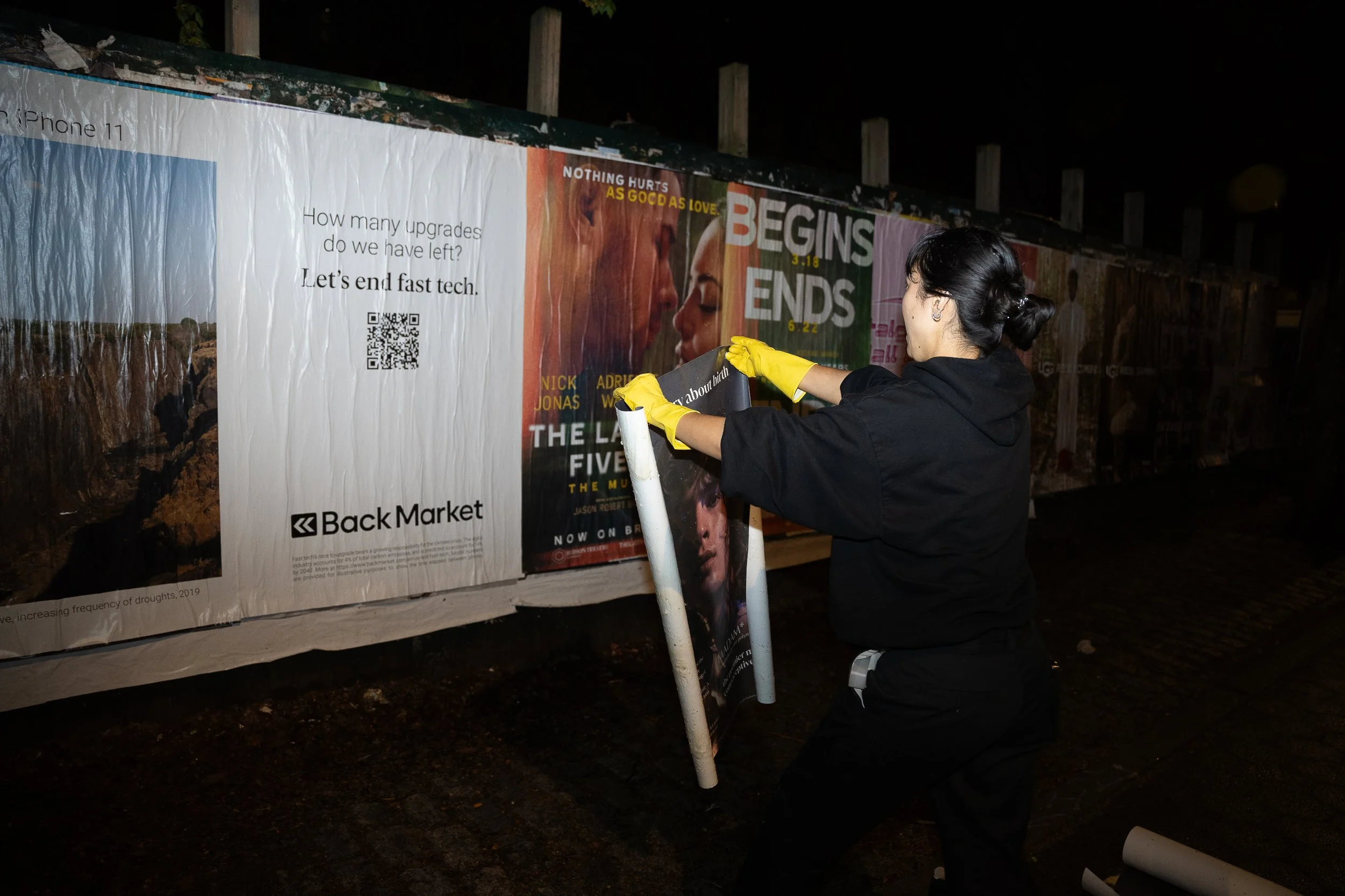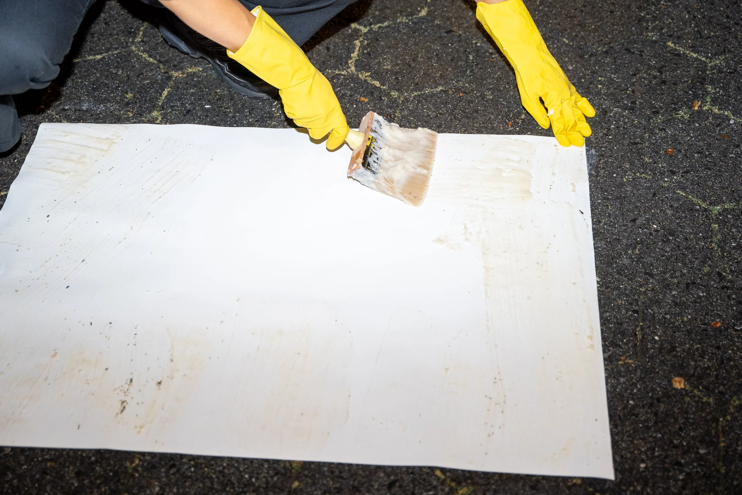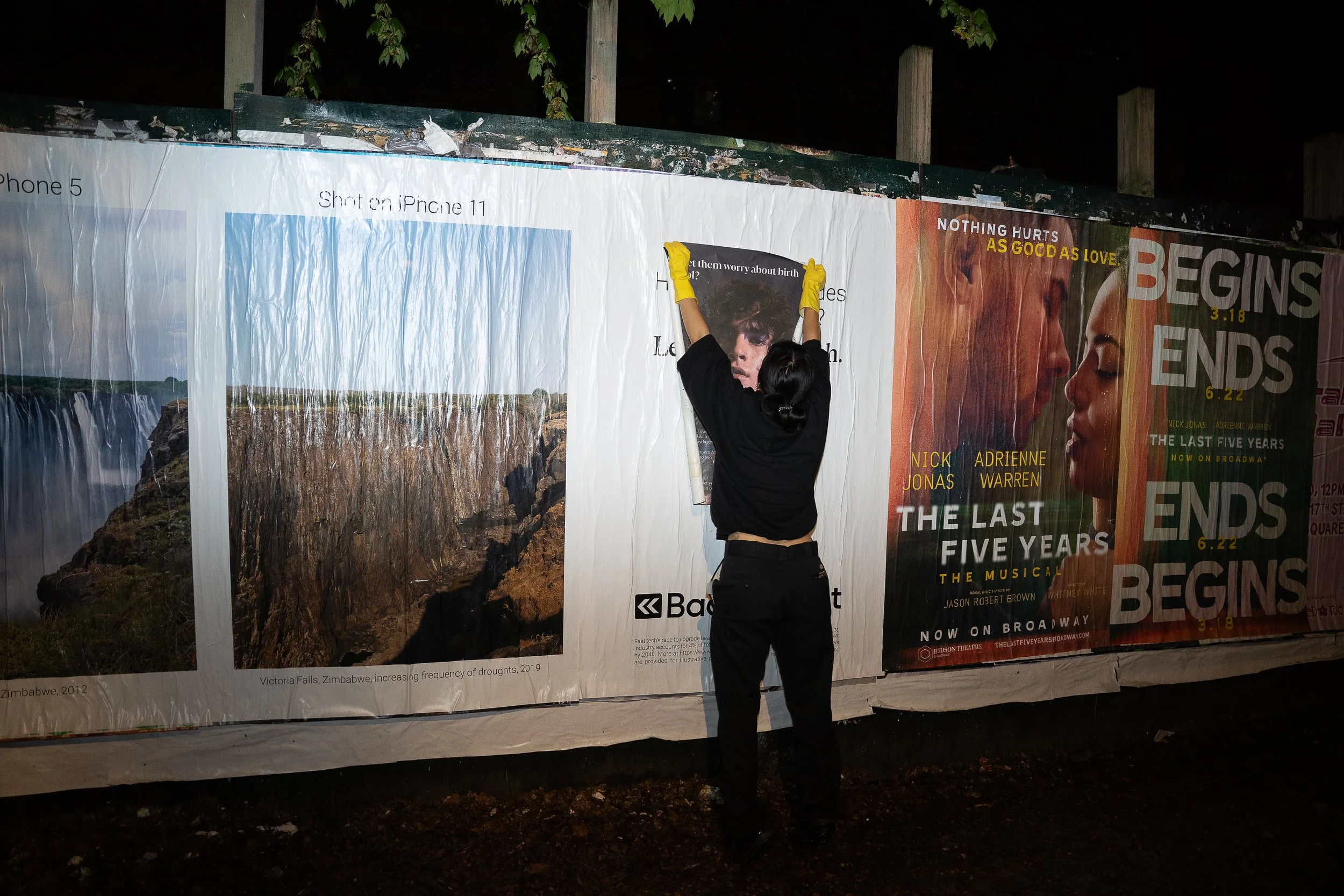 The photographs themselves carry an eerie, documentarian gaze: illuminated by harsh flash, the installations appear as though captured at the scene of a crime. The thick, glue-like wheatpaste further echoes the act of reproduction—viscous, messy, and inescapably bodily—transforming a street intervention into a meditation on biology, power, and accountability.