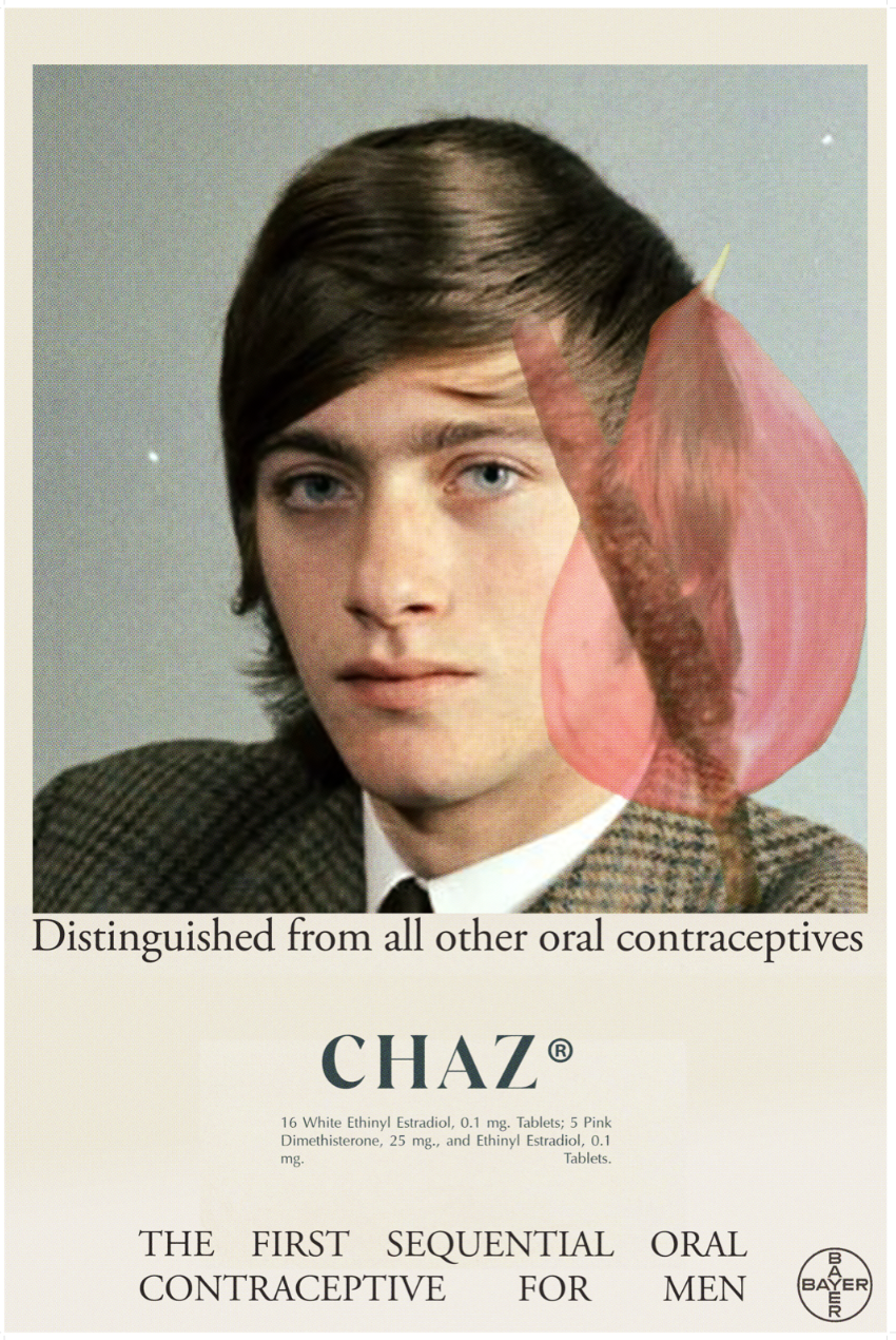 Part performance and part installation, CHAZ™ consists of two large-scale posters (24 × 36 in), designed in the visual language of 1970s pharmaceutical advertising. The works were wheatpasted in two high-traffic locations in New York’s Lower East Side and documented in situ. By mirroring historic ad rhetoric, the project exposes the gendered inequity of reproductive responsibility while proposing a function-based framework that centers “ejaculating individuals.”